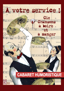« A votre service ! » est un spectacle musical et clownesque. Un duo sert un menu gastronomique composé d’une quinzaine de plats sonores et visuels. Installés en terrasse, les clients goûtent les spécialités maison. La clientèle rit, chante et participe gaiement. Un repas à déguster entre amis ou en famille.