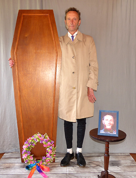 Jim est heureux de vous convier pour lui rendre un dernier hommage. Grâce au kit funéraire qu’il a reçu, il va tenter de mener à bien cette cérémonie . Or Jim est un peu à coté de ses pompes … mais pas funèbre : tout se joue de lui et il joue de tout. Bêtises, facéties, dérapages, rires, fanfaronnades s’invitent en ce rituel.